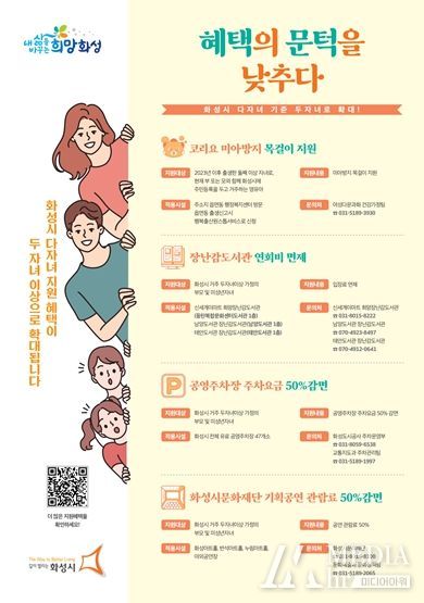 미디어아워 박미영 기자 | 화성시가 저출생 극복을 위한 방안으로 화성시 다자녀 기준을 기존 세 자녀에서 두 자녀로 확대했다.