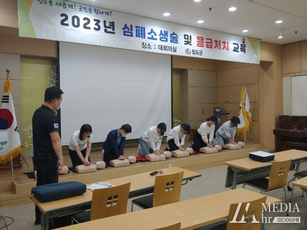 미디어아워 조연정 기자 | 청도군은 지난 12일 중앙응급교육센터 주관으로 보건소 대회의실에서 법정 의무대상자인 직원들을 대상으로 심폐소생술 교육을 실시했다.