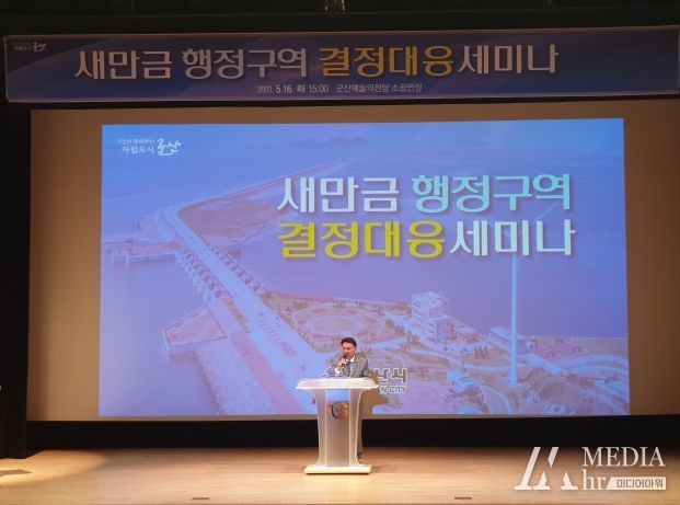 미디어아워 박미영 기자 | 군산시가 16일 군산시 예술의전당 소공연장에서 새만금 행정구역 결정 대응 세미나를 개최했다.