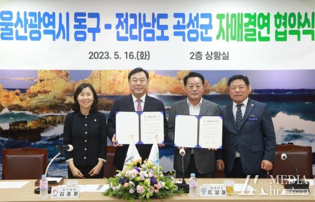 미디어아워 박미영 기자 | 울산 동구와 전남 곡성군은 5월 16일 오전 11시 동구청 2층 상황실에서 양 자치단체의 상생발전과 우호증진을 위한 자매결연 협약을 체결했다.