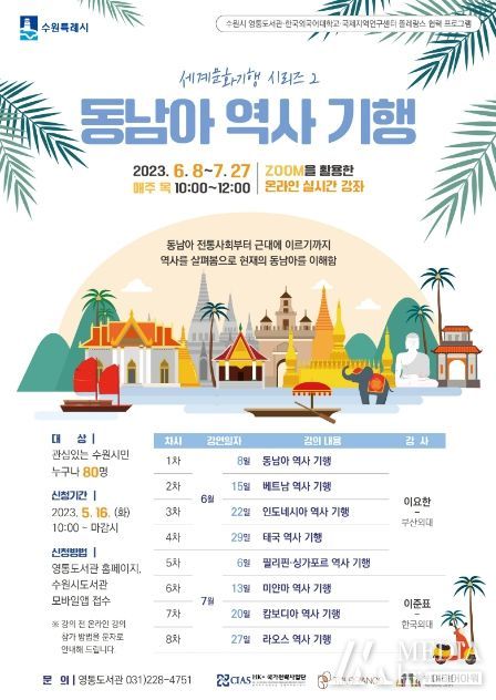 미디어아워 진금하 기자 | 수원시 영통도서관이 한국외국어대학교와 협력해 운영하는 강좌 ‘동남아 역사 기행’ 참가자를 선착순으로 모집한다.