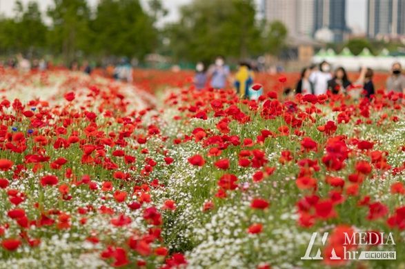 활짝 핀 꽃양귀비, 작약, 수레국화, 안개초, 금영화 등 6,000여만 송이 봄꽃이 관람객을 맞이한다.