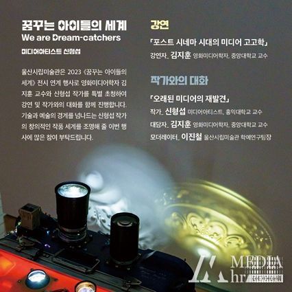 이번 행사는 ‘2023 꿈꾸는 아이들의 세계 전시’ 진행 중인 전(前) 영화사적 광학장치에 바탕을 둔 신형섭 작가의 작품을 영화미디어학 분야의 국제적인 학자인 김지훈 교수가 새롭게 조명하는 자리이다.