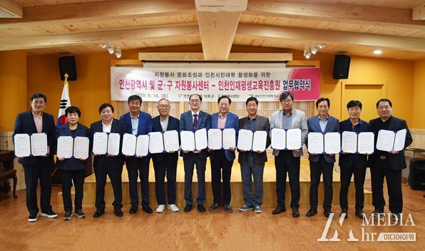 미디어아워 박미영 기자 | 인천인재평생교육진흥원(원장 류권홍)이 내달 16일, 인천광역시 및 기초단위 자원봉사센터(이사장 전년성)와 인천시민대학 활성화 및 자원봉사 문화조성을 위한 공동업무협약을 체결했다.