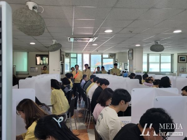 직원들은 훈련 공습경보 발령 후 유도 요원의 대피지시에 따라 신속하게 임시 대피소인 구내식당으로 대피했으며, 공습상황에 대비한 비상시 국민행동요령을 교육받았다.
