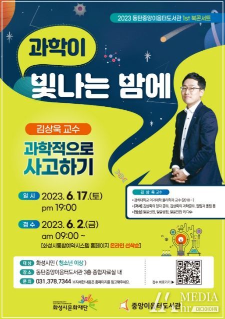 화성시립중앙이음터도서관(화성시문화재단 운영)은 6월 17일(토)과 8월 5일(토)에 북콘서트를 두 차례 개최한다. 과학이라는 주제로 펼쳐질 이번 북콘서트는 물리학자 김상욱 교수, 과학 크리에이터 궤도를 초청해 여름밤 우리들을 빛나는 과학의 세계로 이끌 예정이다.
