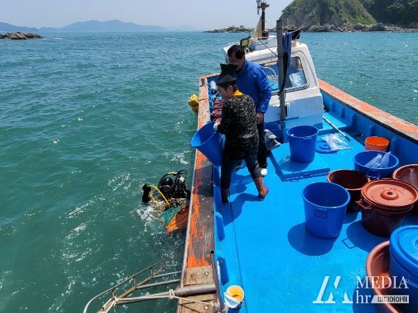 미디어아워 조연정 기자 | 옹진군은 관내 수산자원 회복·증강 및 어업인 소득 증대를 위해 지난 16일 덕적 면허어장에 건강하고 우량한 어린해삼 35만마리를 방류했다고 밝혔다.