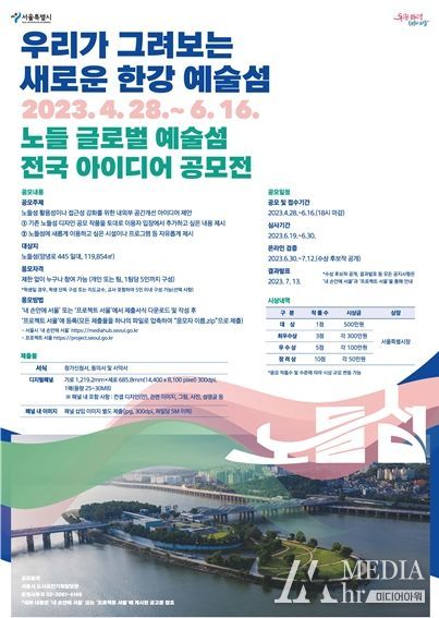 한편, 서울시는 노들섬의 매력을 시민들과 함께 공감하고, 시민들이 원하는 시설용도, 프로그램 등을 함께 고민하기 위해 '우리가 그려보는 한강 예술섬'이라는 주제로 오는 6월 16일까지 시민 아이디어 공모전을 진행 중이다. 연령 및 거주지 제한 없이 누구나 참여할 수 있으며, 공모 접수는 ‘내 손안에 서울’ 또는 ‘프로젝트 서울’을 통해 신청서 양식과 서약서 등을 다운 받아, ‘프로젝트 서울’로 접수하면 된다.
