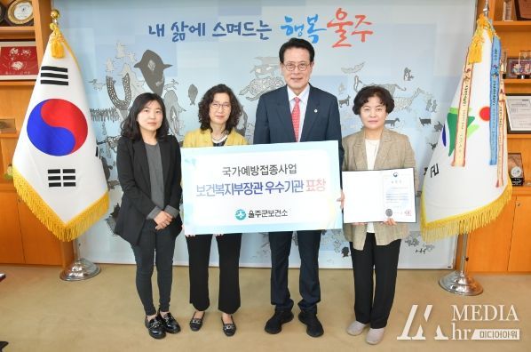 미디어아워 박미영 기자 | 울주군보건소가 질병관리청 주관 ‘2023년 국가예방접종 사업’ 우수기관으로 선정돼 보건복지부장관상을 수상했다고 17일 밝혔다.