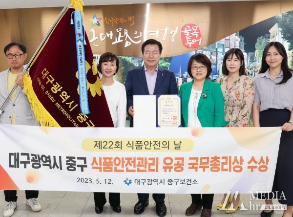 미디어아워 조연정 기자 | 대구 중구는 지난 12일 2023년 식품안전관리 우수기관으로 선정되어 '제22회 식품안전의 날'기념식에서 국무총리 표창을 수상했다.