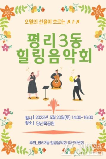 미디어아워 조연정 기자 | 평리3동힐링음악회추진위원회가 5월 20일 토요일 오후 2시 당산목공원에서 평리3동 주민들을 위한 힐링음악회를 개최한다.