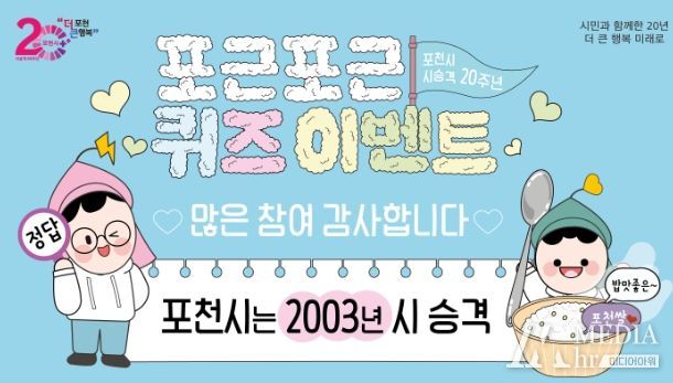 미디어아워 박미영 기자 | 포천시가 시 승격 20주년을 기념하기 위해 실시한 ‘포근포근 퀴즈 이벤트’에 11,918명이 참여하며 뜨겁게 마무리됐다.