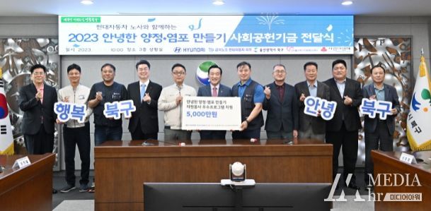미디어아워 박미영 기자 | 현대자동차 노사가 '안녕한 양정·염포 만들기' 사업 지원을 위해 18일 울산 북구에 사회공헌기금 5천만원을 전달했다.