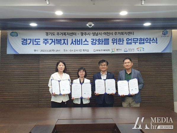 미디어아워 박미영 기자 | 경기도 주거복지센터가, 18일 경기주택도시공사 본사에서 광주시 등 3개 시 주거복지센터와 도 내 취약계층의 주거복지서비스 및 주거복지 네트워크 강화를 위해 업무협약을 체결했다고 밝혔다.