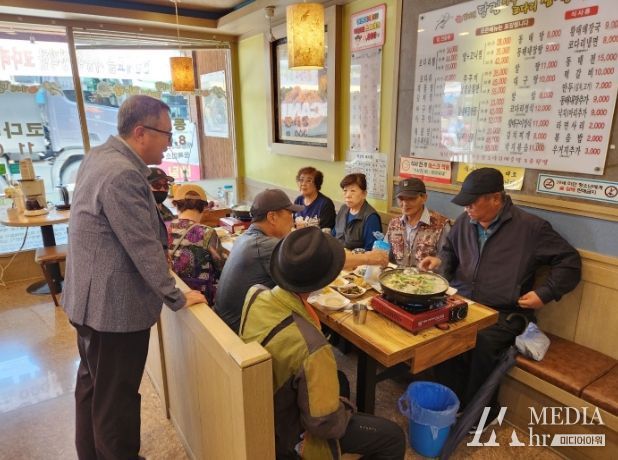 미디어아워 박미영 기자 | 광명시 광명3동 저소득 어르신 10명에게 ‘김미진 당진 아구 코다리 찜·탕’에서 19일 점심 식사를 대접했다.