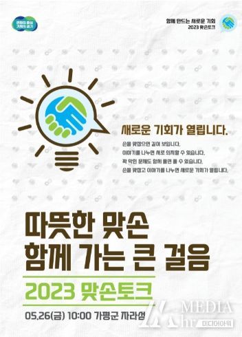 미디어아워 박미영 기자 | 김동연 경기도지사가 오는 26일 오전 10시 가평군 자라섬에서 관광산업 활성화를 주제로 7번째 맞손토크를 개최한다. 이번 맞손토크는 자라섬 봄꽃 축제(5.20.~6.18.) 기간에 열려 더 많은 가평군민과 함께 관광산업 활성화를 주제로 정책 방안을 논의할 예정이다.