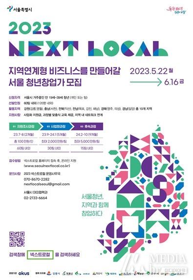 서울시는 ‘서울 청년(만19~39세)’ 대상 지역연계형 청년 창업 지원사업 '넥스트로컬 5기'를 5월 22일부터 6월 16일까지 총 60팀(120명 내외) 모집한다고 밝혔다.