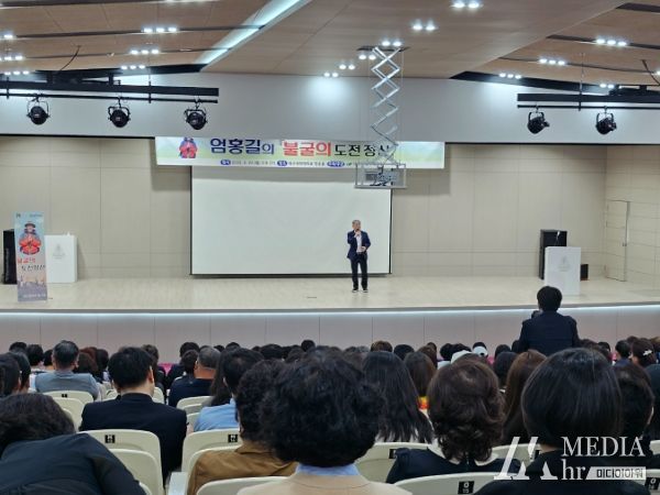 지난 22일 오후 2시 대구과학대학교 영송홀에서 열린 명사초청 특강에는 세계 최초로 히말라야 8,000m급 16좌 완등에 성공한 세계적인 산악인 엄홍길 대장이 강연자로 나와서 ‘불굴의 도전 정신’이라는 주제로 영광 뒤에 적지 않은 좌절과 실패가 있었고, 그것을 극복해 온 과정을 참석자들에게 생생하게 들려주었다.