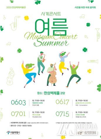 미디어아워 조연정 기자 | 한성백제박물관은 신록의 계절인 여름을 맞아 ‘한성백제박물관 사계콘서트 – 여름’을 박물관 내 한성백제홀에서 6~7월 두 달간 총 4회 개최한다. 이번 공연은 4개문화예술 단체의 재능 기부로 펼쳐진다.