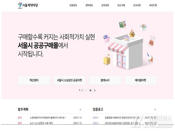 미디어아워 조연정 기자 | 서울시가 서울계약마당을 새롭게 단장하여 5월 22일 19시부터 서비스한다고 밝혔다. 이번 누리집 개편으로 공공구매 활성화를 통해 중소기업 등이 성장하는 데 큰 도움이 될 것으로 기대한다.