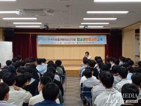 미디어아워 조연정 기자 | 한국자유총연맹의성군지회(회장 김영식)는 지난 22일 의성고등학교 강당에서 '2023년 청소년 민주시민교육'을 개최했다.