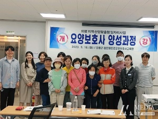 미디어아워 조연정 기자 | 의령군은 올해 ‘경남도 지역산업맞춤형 일자리창출 지원사업’의 목적으로 지난 16일 함안메트로요양보호사교육원에서 교육생 15명이 참석한 가운데 ‘요양보호사 양성과정’을 개강했다고 밝혔다.