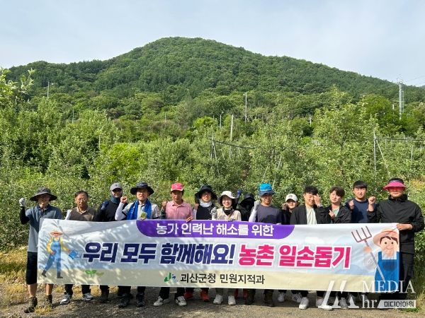 미디어아워 조연정 기자 | 충북 괴산군 민원지적과 직원들이 24일 농번기를 맞이해 연풍면 농가를 찾아 일손 돕기 봉사활동을 하며 지역 사랑 나눔을 실천했다.