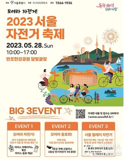 미디어아워 조연정 기자 | 어린이부터 어르신까지 자전거를 사랑하는 서울시민이라면 누구나 참여하고 즐길 수 있는 서울의 대표 자전거 축제 “2023 서울 자전거 축제”가 5월 28일 “모여라 자전거!” 슬로건에 맞춰 반포 한강공원을 무대로 개최된다.