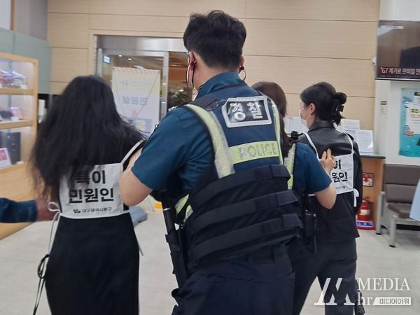 미디어아워 조연정 기자 | 대구 동구청은 지난 23일 종합민원실에서 공무원, 경찰 등 15여 명이 참석한 가운데 폭언‧폭행 등 비상 상황 발생 시 대응능력을 향상하고 안전한 근무환경 조성을 위해 모의훈련을 실시했다.