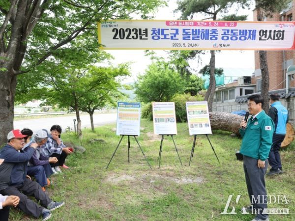 미디어아워 조연정 기자 | 청도군은 돌발병해충(미국선녀벌레, 갈색날개매미충 등)의 확산 방지를 위하여 지난 24일 화양읍 다로리 일원에서 협업공동방제 연시회를 개최했다.