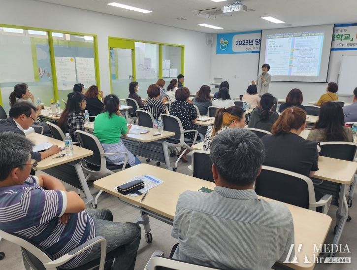 미디어아워 진금하 기자 | 당진시가 25일 2023년 당진형 마을교육공동체 ‘마을학교’운영 발전 방향과 민·관·학 혁신 교육 거버넌스 확대를 위해 마을학교 대표자 전체 회의를 열었다.
