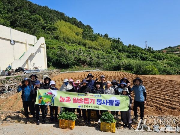 미디어아워 조연정 기자 | 통영시는 지난 5월 25일 농촌일손 부족해소를 위해 욕지면 동항리 소재 고구마 우량종순 생산 포장에 일손돕기 봉사활동 실시하고 농업인 영농 애로사항을 청취하는 등 농가에 도움의 손길을 전했다.