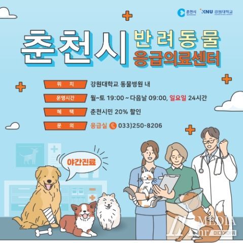 시 관계자는 “반려동물 응급의료센터 개원 이후, 늦은 시간에도 반려동물 진료를 할 수 있어, 강원지역 시군과 인근 경기지역 반려인들에게 큰 호응을 얻고 있다”라며 “앞으로도 시는 사람과 동물이 함께 행복한 도시 춘천 구현을 위해 최선을 다하겠다”라고 말했다.