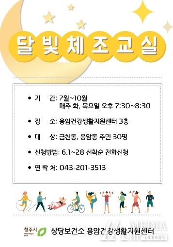 미디어아워 조연정 기자 | 청주시 상당보건소는 야간 ‘달빛체조교실’참여자를 모집한다고 26일 밝혔다.