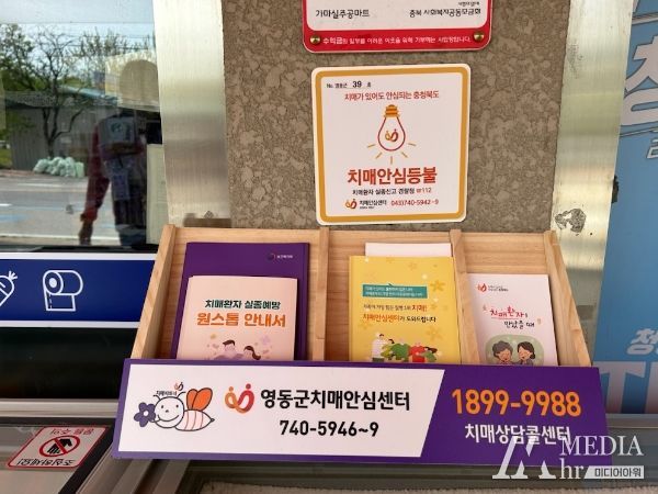 미디어아워 조연정 기자 | 충북 영동은 배회 및 실종 위험이 있는 치매환자를 위한 치매안전망 구축과 실종 예방사업의 일환으로 지역내 6개소의‘치매안심등불’ 기관을 신규 지정했다고 밝혔다.