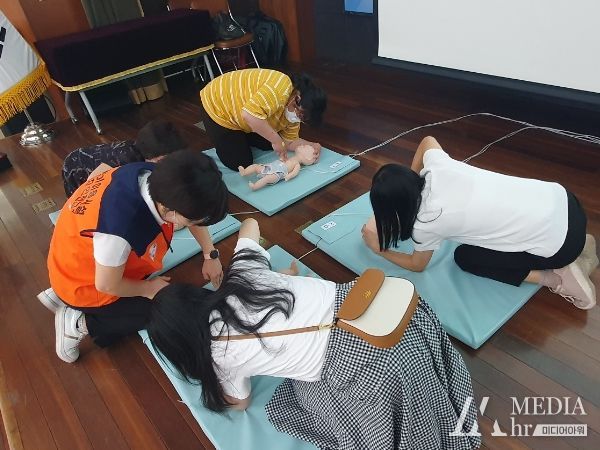 안전교육은 응급상황이 발생했을 때 신속한 조치를 할 수 있도록 응급상황 행동 요령, 어린이 대상 기도폐쇄 시 대처 방법, 심폐소생술 실습, 응급처치 상황 AR-VR 체험 등으로 구성됐다.
