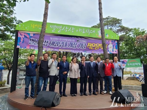 특히 이번에 조성한 야외무대는 넓이 30㎡ 높이 3.2m로 칠성종합시장 남편에 있는 칠성마당(대구 북구 칠성동1가 279-1 소재)에 위치하고 있으며, 문화와 예술을 사랑하는 사람들이 마음껏 끼를 발산하고 상인과 고객들에게 문화예술을 향유할 수 있도록 한다는 의미를 담아 ‘별별상상 야외무대’라는 명칭으로 지난 5월 26일 음악회와 함께 개장했다.