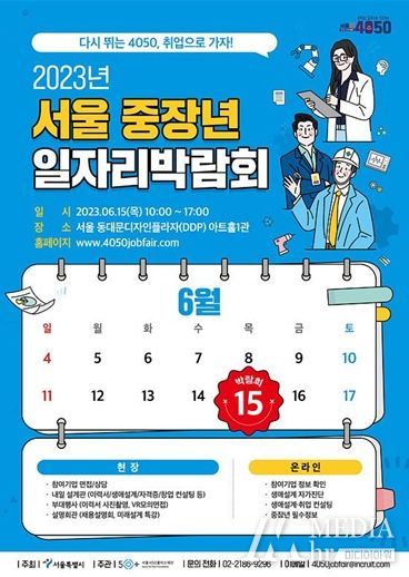 미디어아워 조연정 기자 | 서울시50플러스재단은 서울시 중장년을 집중 지원하는 ‘서울런 4050’ 사업의 일환으로 중장년 구직자들에게 실질적인 일자리 정보와 취업 기회를 제공하는 중장년 일자리 박람회를 15일 동대문디자인플라자(DDP)에서 개최한다.