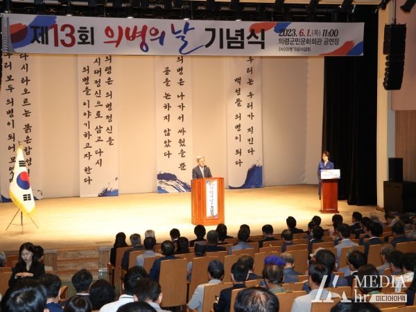 미디어아워 조연정 기자 | ‘의병의 날'을 국가기념일로 만든 '의병의 성지' 의령군이 1일 의령군민문화회관에서 곽재우 장군을 비롯한 18장군의 후손, 의병기념사업회 회원, 군민 등 350여 명이 참석한 가운데 제13회 의병의 날 기념식을 개최했다.