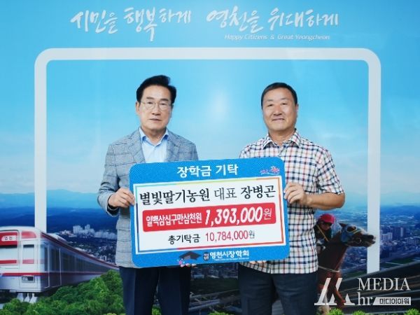미디어아워 조연정 기자 | 영천시산림조합에서 500만원, 별빛딸기농원 장병곤 대표가 139만 3천원의 장학금을 7일 (재)영천시장학회에 기탁했다.
