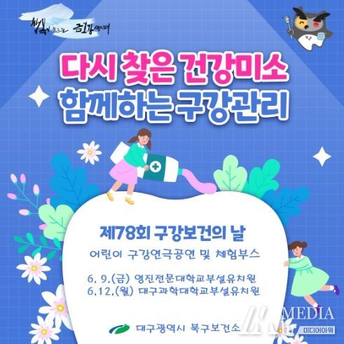 미디어아워 조연정 기자 | 대구 북구보건소는 제78회 구강보건의 날(6월 9일)을 기념하여 “다시 찾은 건강미소”를 슬로건으로 어린이 구강 연극공연 등 행사를 진행한다.