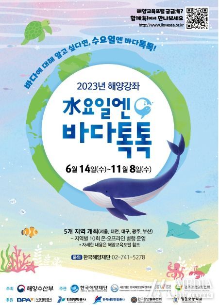 미디어아워 기자 | 해양수산부와 한국해양재단(이사장 문해남)은 6월 14일부터 전국 5개 도시(서울, 대전, 부산, 대구, 광주)에서 ‘2023년 해양강좌(수요일엔 바다톡톡)’를 동시에 진행한다.