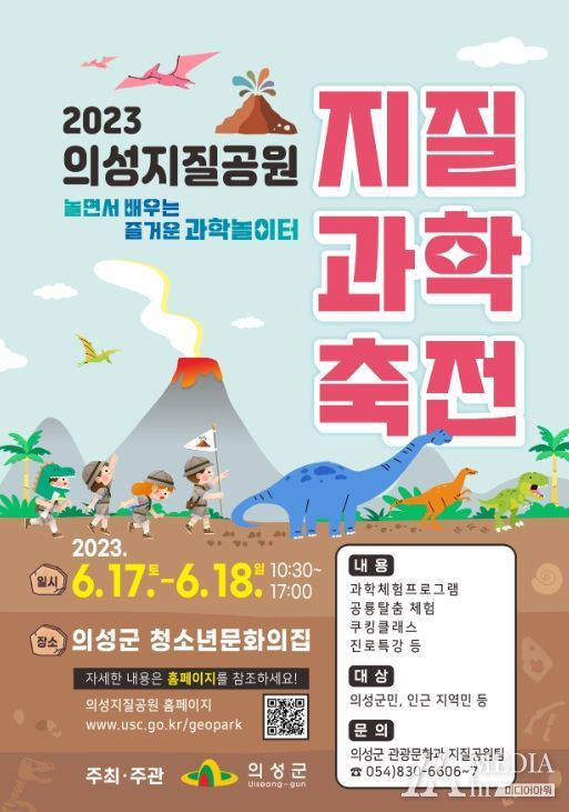 미디어아워 기자 | 의성군은 6월 17일~18일, 양일간 의성군 청소년문화의집에서 '2023 의성지질공원 지질과학축전'을 개최한다고 밝혔다.