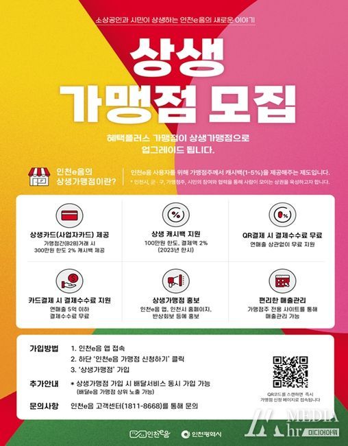 미디어아워 기자 | 인천광역시는 인천사랑상품권의 장기적 자생방안 마련을 위해‘상생가맹점’을 상시 모집한다고 밝혔다.