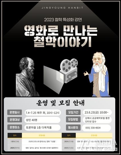 미디어아워 기자 | 김해시 진영한빛도서관은 다소 어려운 주제인 철학을 영화라는 친근한 소재를 이용해 시민들에게 접근하고자 7월 한 달간 ‘영화로 만나는 철학이야기’ 강연을 운영한다고 27일 밝혔다.
