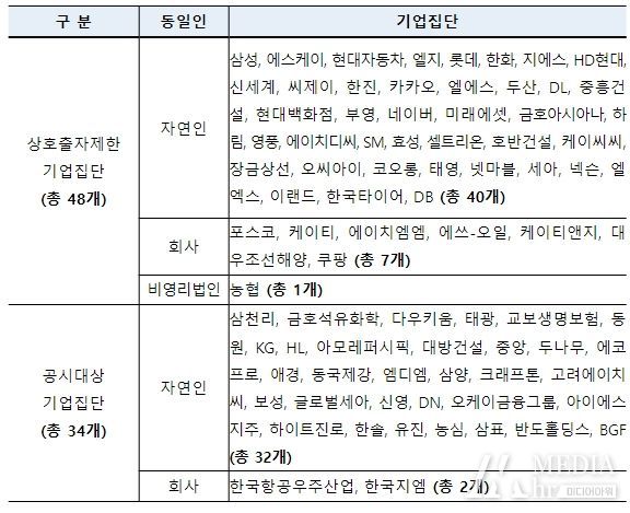 첫째, 동일인 판단 기준으로 ①기업집단 최상단회사의 최다출자자, ②기업집단의 최고직위자, ③기업집단의 경영에 대해 지배적 영향력을 행사하고 있는 자, ④기업집단 내・외부적으로 대표자로 인식되는 자, ⑤동일인 승계 방침에 따라 기업집단의 동일인으로 결정된 자 등 5가지를 마련했다.