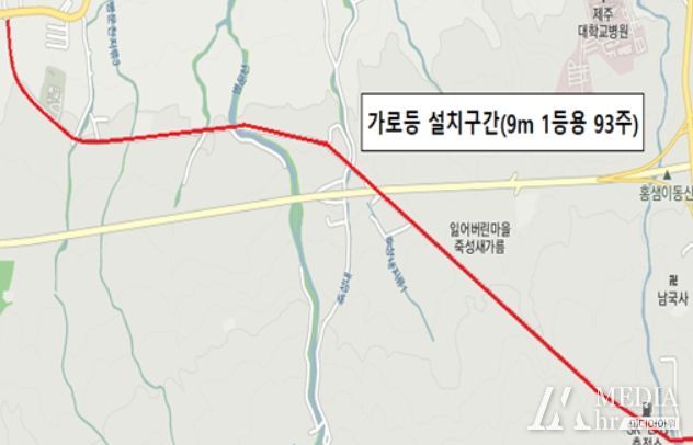 미디어아워 기자 | 제주시는 가로등 미시설로 교통사고 등 안전사고 우려가 높았던 한북로 전 구간(온난화농업센터삼거리 ~ 제주대사거리, 3.5km)에 대해 가로등 설치를 완료했다.