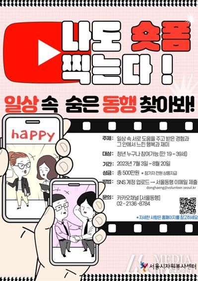 미디어아워 기자 | 서울시자원봉사센터는 7월 3일부터 8월 20일까지 2023 서울동행 영상 공모전 '일상 속 숨은 동행 찾아봐!'을 개최한다.