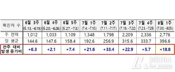 김포시보건소에 따르면 김포시 코로나19 하루평균 확진자는 8월 5일 기준 396.6명으로 7월 1주 (192.6명) 이후 매주 평균 20.4%로 크게 증가하는 추세다.