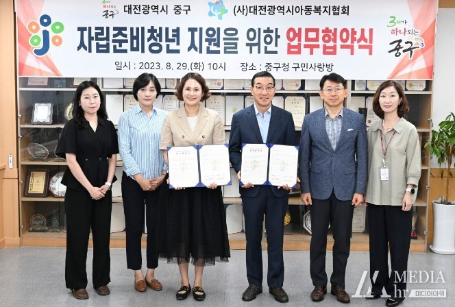 미디어아워 이다정 기자 | 대전 중구는 29일 구청 구민사랑방에서 대전아동복지협회와 자립준비청년 지원을 위한 업무협약을 체결했다고 밝혔다.